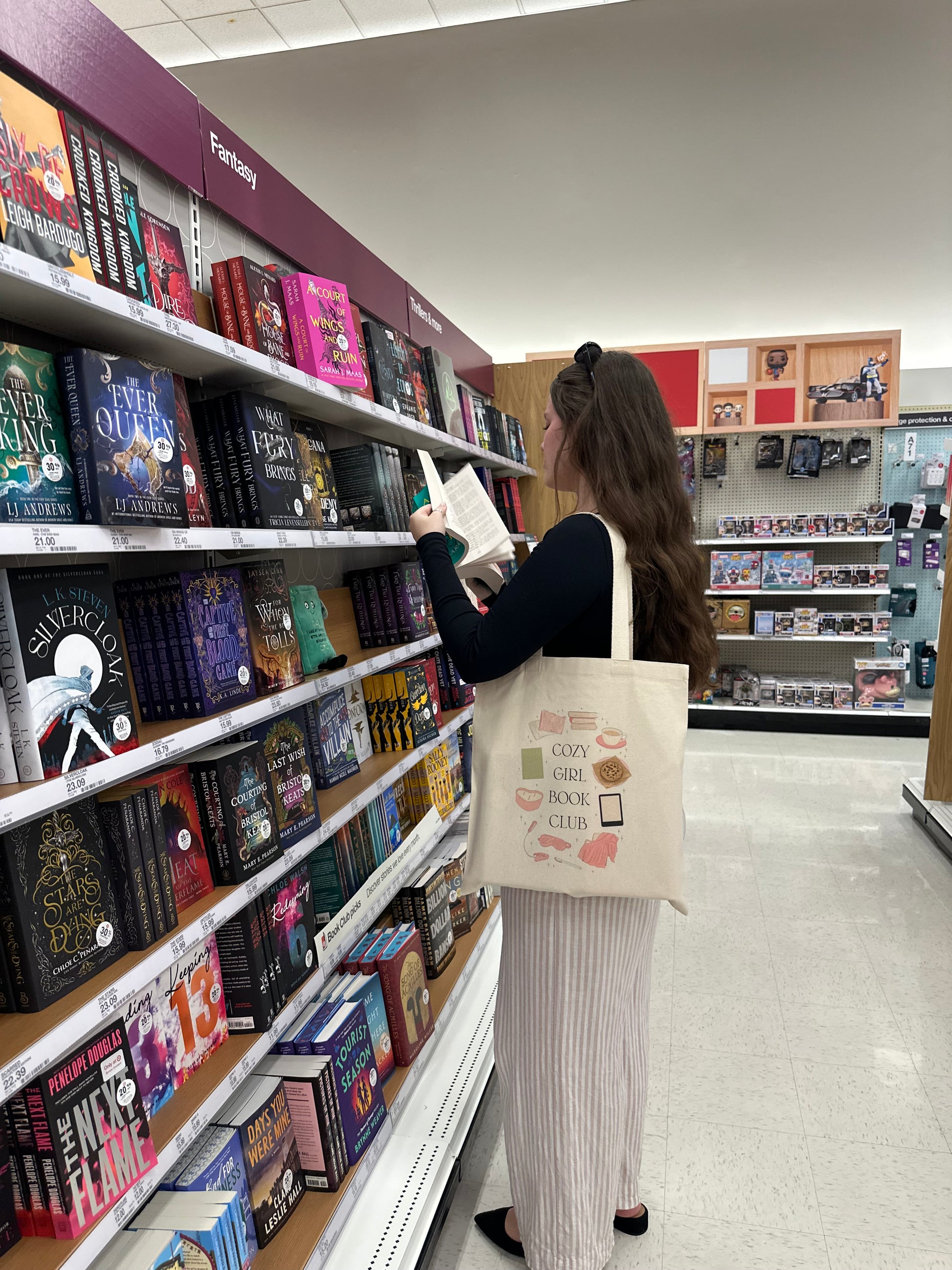 The perfect tote for all my cozy book girls out there, or misc, needs! Whether you're shopping for your weekly [;)] supply of lemon, running errands, or just going about your day, this spacious & stylish tote has got you covered!